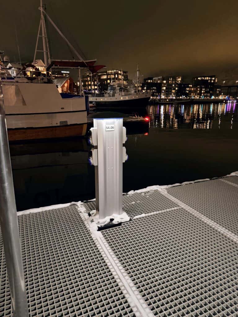For flytebryggene i Indre Havn i Tromsø utviklet vi nye deksler til lysstolpene. Målet var å styre lyset nedover slik at det ikke blender eller lyser i uønskede retninger.